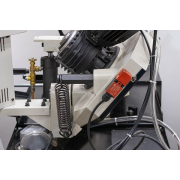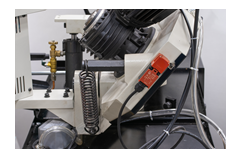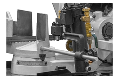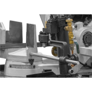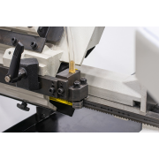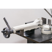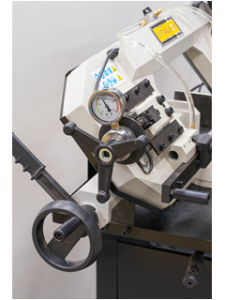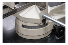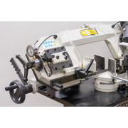 Модель имеет быстрорегулируемые тиски для резки под углом, поворачивается рама, а не заготовка. Тиски с системой быстрого отвода ускоряют процесс смены заготовки (ускоренный отвод подвижной губки происходит без вращения маховика).