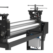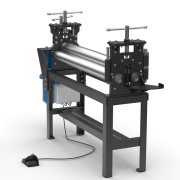 Электромеханический трехвалковый вальцовочный станок, усиленной конструкции, предназначенный для изготовления цилиндрических обечаек и дугообразных элементов из листового проката, цветных металлов и сплавов, применяемых в вентиляционно-заготовительном производстве, при изготовлении трубопроводных кожухов, водосточных и ливневых систем, в строительстве, оказанию услуг по вальцовке и металлообработке, а так же на других видах производства.